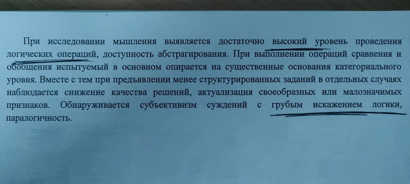 Читала сегодня заключения коллег психологов, работающих на нашей площадке. Изумилась:) Так у пациента логика присутствует или же нет? Наверное, отчасти поэтому психиатры давно перестали читать заключения психологов, и эти бумажки не представляют какой-то диагностической ценности. Может, конечно, и не из-за этого. Просто всегда удивлялась этому, как "умные и опытные" специалисты допускают такие глупые ошибки. И это не единичный случай. Что это? Невнимательность? Или работа "на отвали"?..